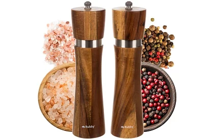 Zajišťují čerstvě mleté koření s možností nastavení jemnosti mletí, což umožňuje upravit chuť pokrmů přesně podle potřeby. Keramický mechanismus poskytuje dlouhou životnost a spolehlivé mletí i tvrdých koření, jako je himalájská sůl nebo pepř. Elegantní akátové dřevo dodává mlýnkům odolnost a styl, ideální pro každou kuchyni nebo jako dárek pro milovníky vaření.
