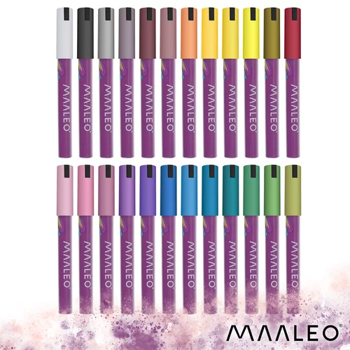 Akrylové fixy MAALEO obsahují pravou akrylovou barvu, nikoli klasický inkoust na vodní bázi