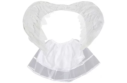 Proměňte své dítě v krásného anděla s tímto elegantním kostýmem. Dvouvrstvá sukně s gumičkou a jemná bílá křídla z peří vytvářejí dokonalý outfit pro vánoční představení, karneval nebo tematickou párty. Kostým nejen vypadá nádherně, ale také podporuje hru, fantazii a radost z převleků.