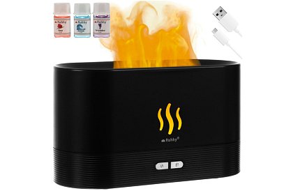 Moderní 3v1 difuzér kombinuje zvlhčování vzduchu, aromaterapii a RGB LED lampu s ohnivým efektem. Pomáhá udržet správnou vlhkost vzduchu, uvolnit stres a vytvořit příjemnou atmosféru v bytě, domě nebo kanceláři. Kompaktní design a elegantní černá barva zapadne do každého interiéru a poskytne stylovou dekoraci.