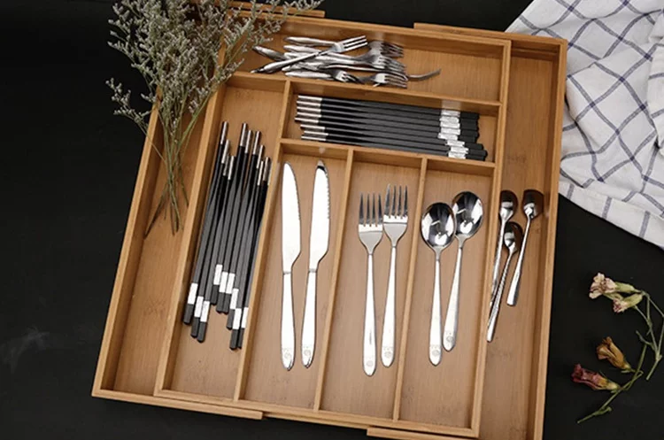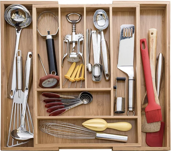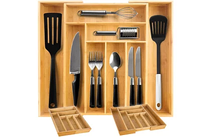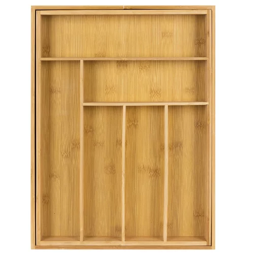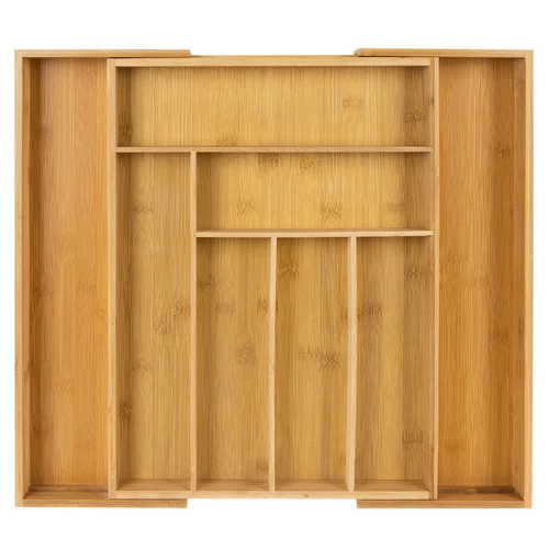 Praktický a elegantní pomocník pro přehledné uspořádání příborů a kuchyňského náčiní. Díky rozšiřitelné konstrukci se přizpůsobí velikosti zásuvky a nabídne 6 až 8 přihrádek podle potřeby. Přírodní bambusové dřevo působí esteticky, je hygienické a vhodné pro každodenní použití v moderní i klasické kuchyni. Organizér pomáhá udržet pořádek, chrání příbory a zajišťuje rychlý přístup při vaření i stolování.