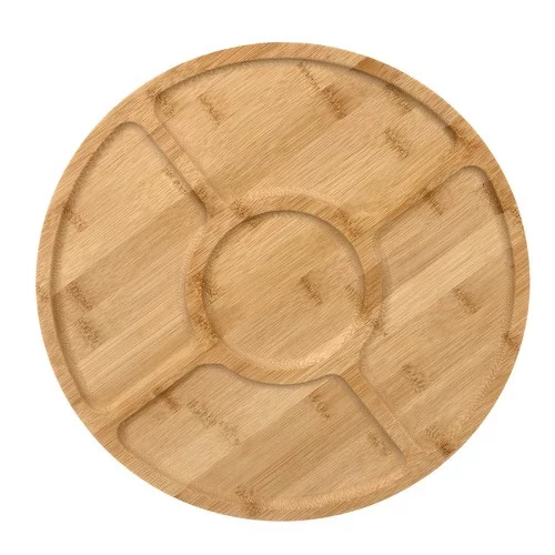 Otočný servírovací talíř umožňuje pohodlné a stylové podávání jídel, kdy mají všichni hosté snadný přístup k pokrmům z jakékoli strany. Díky stabilní konstrukci, přírodnímu bambusu a praktickým přihrádkám lze elegantně servírovat sýry, uzeniny, ovoce nebo jiné občerstvení bez rizika smíchání chutí. Hladký povrch zajišťuje snadnou údržbu a odolnost proti vlhkosti a pachům, takže deska dlouhodobě zůstává krásná a hygienická.