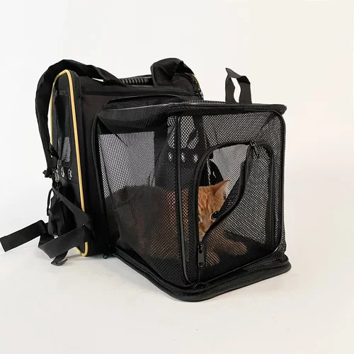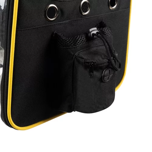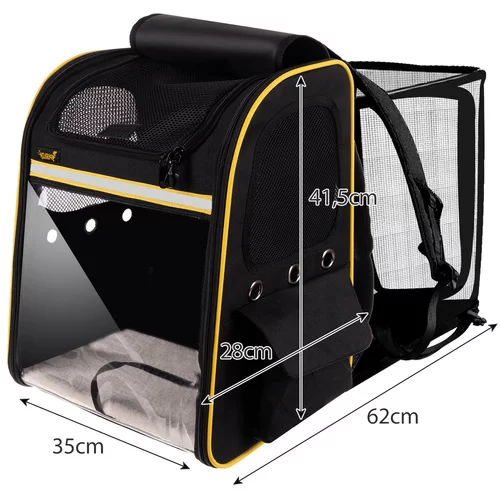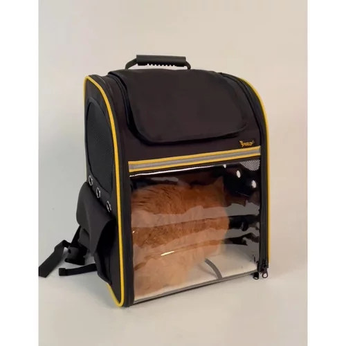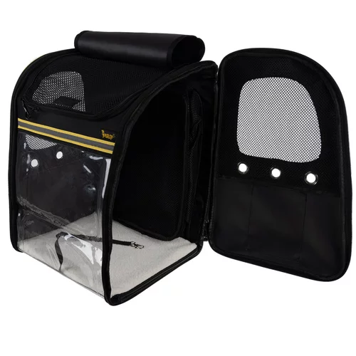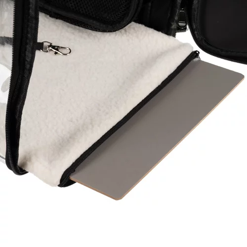Praktický a bezpečný batoh umožňuje pohodlnou přepravu psa, kočky nebo králíka. Poskytuje dostatečné větrání díky síťovaným oknům a průhledné přední fólii, aby mazlíček mohl sledovat okolí. Vyztužená konstrukce a měkká vložka zajišťují stabilitu a komfort při cestování, zatímco boční kapsy nabízejí prostor na pití, svačinu nebo drobné příslušenství. Ideální společník na výlety a společné dobrodružství.