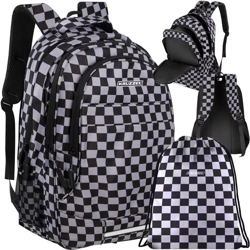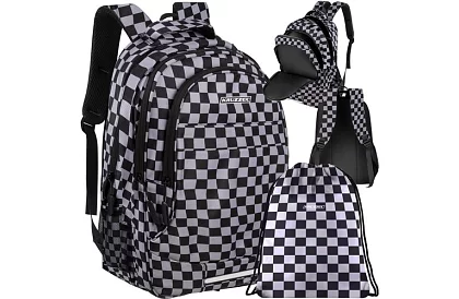 Praktický a odolný batoh vhodný pro školu, sport i každodenní nošení, který spojuje funkčnost, pohodlí a výrazný kostkovaný design. Kvalitní materiály, polstrovaná záda a promyšlené vnitřní členění zajišťují pohodlné nošení a bezpečné uložení knih, sešitů i elektroniky. Součástí setu je také taška na obuv nebo tělocvik, sladěná se stylem batohu.