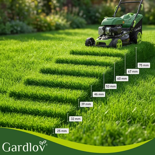 • Výška sečení: 8 úrovní 25–75 mm, nastavení od nízké až po vyšší trávu