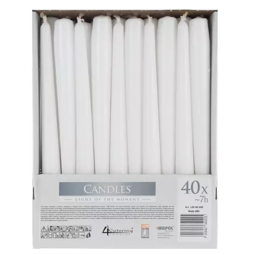 Elegantní a nadčasová kónická svíčka o průměru 2,3 cm a výšce 24,5 cm, která zaujme svou velkou velikostí a dlouhou dobou hoření až 7 hodin. Ideální do luceren, svátečních aranžmá, interiérů kostelů nebo pro slavnostní příležitosti jako jsou křty, svatby či jiné speciální události.