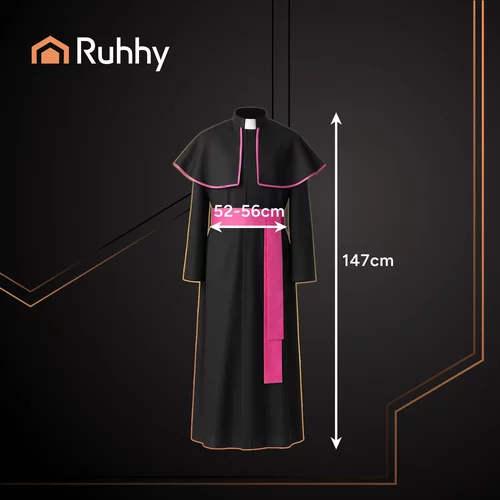 Klasický biskupský kostým spojuje autentický duchovní vzhled s pohodlným nošením. Černá sutana, plášť s límcem a fialová šerpa zajišťují výrazný styl vhodný pro Halloween, kostýmní párty, cosplay i divadelní představení. Volný střih XL/XXL poskytuje komfort a snadné převlékání. Kompletní 3v1 kostým je připraven k okamžitému použití a okamžitě doplní každou akci výrazným charakterem.