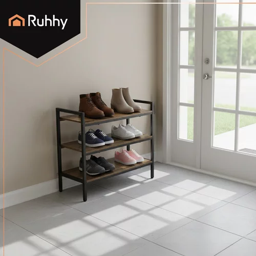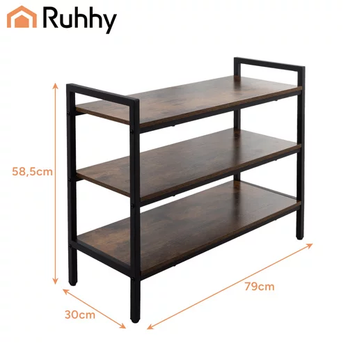 Stylový botník Ruhhy spojuje funkčnost, odolnost a loftový design v kompaktním provedení. Tři pevné police nabídnou dostatek místa pro obuv celé rodiny, zatímco kombinace kovového rámu a dřevěných polic dodá interiéru moderní a útulný vzhled. Ideální řešení pro udržení pořádku i v menších předsíních bez zbytečného zabírání prostoru.