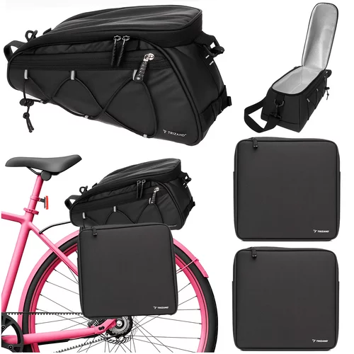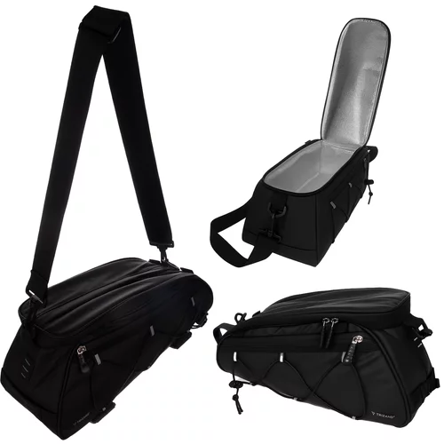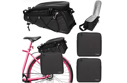 Praktická brašna na kolo s objemem až 16 litrů umožňuje pohodlně převážet oblečení, jídlo, nářadí nebo dokumenty. Centrální vak s termo funkcí udržuje teplotu potravin a nápojů, ideální pro pikniky a cyklistické výlety. Brašnu lze nosit přes rameno, jednotlivé části snadno připevnit k nosiči pomocí suchého zipu a karabin. Voděodolná konstrukce a reflexní prvky zajišťují bezpečnost a spolehlivost i za deště nebo v noci. Brašny jsou schváleny pro kontakt s potravinami, takže bezpečně přepraví jídlo.