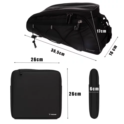 • Rozměry bočních brašen: 26 × 26 × 6 cm