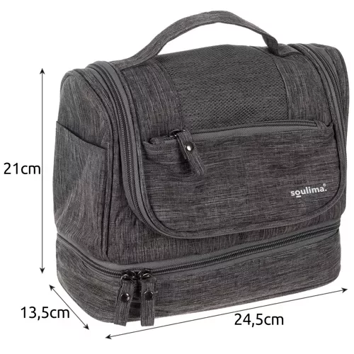Praktická cestovní taška umožňuje uspořádat kosmetiku a doplňky během cest, služebních cest i pobytů ve volné přírodě. Díky závěsnému háčku máte všechny věci na dosah a voděodolný materiál chrání obsah při sprchování nebo nečekaném kontaktu s vodou. Více kapes zajišťuje perfektní přehled a rychlý přístup ke všem nezbytnostem, zatímco zip a držadlo umožňují pohodlné používání.