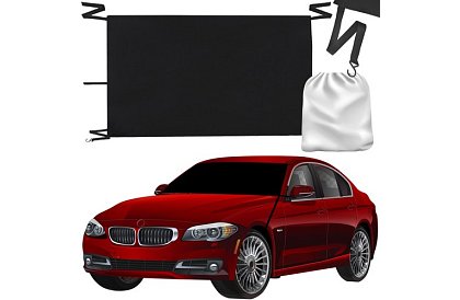 Univerzální clona okna auta, která slouží jako ochrana proti slunci v létě a proti mrazu v zimě. Clona má univerzální rozměry 130 × 115 × 167 cm a flexibilní montážní popruhy, které lze přizpůsobit většině modelů osobních automobilů.