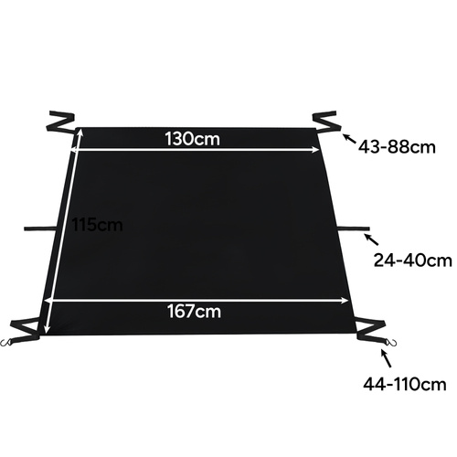 Odolný materiál: oxfordská tkanina odolná vůči dešti, sněhu a slunečnímu záření; nylonové pásky a polypropylenové háčky zajišťují stabilitu i v náročných podmínkách.