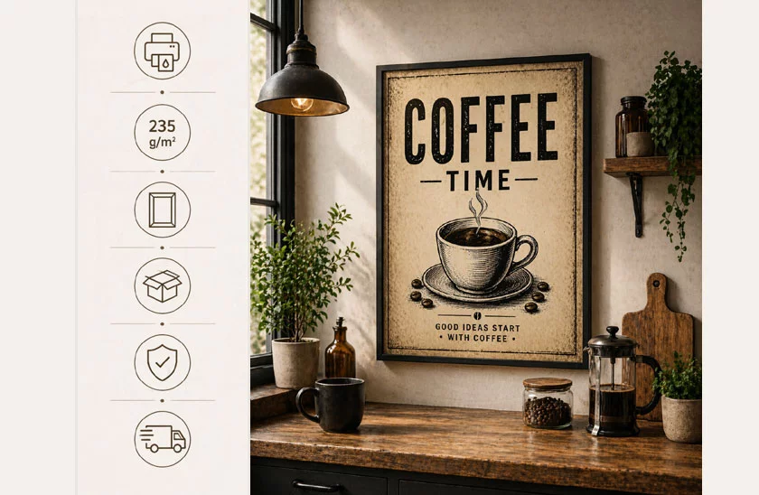 Dodejte svému interiéru příjemnou atmosféru pomocí elegantního obrazu s motivem kávy. Decentní design a nadčasové provedení skvěle doplní kuchyni, jídelní kout, kancelář nebo domácí coffee corner. Kvalitní tisk na pevném fotografickém papíru zajišťuje ostré detaily, výrazné barvy a reprezentativní vzhled. Obraz je vhodný také jako originální dárek pro milovníky kávy a stylových dekorací.