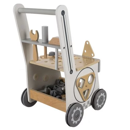 Dřevěná dětská dílna spojuje zábavu a vzdělávání, ideální pro malé kutily od 3 let. Díky odolnému materiálu a pevnému provedení vydrží hodiny kreativní hry a podporuje koordinaci, fantazii a manuální zručnost. Dílna je vybavena řemeslným stolkem, odkládací polici a pojízdným vozíkem, což umožňuje interaktivní a realistickou hru.