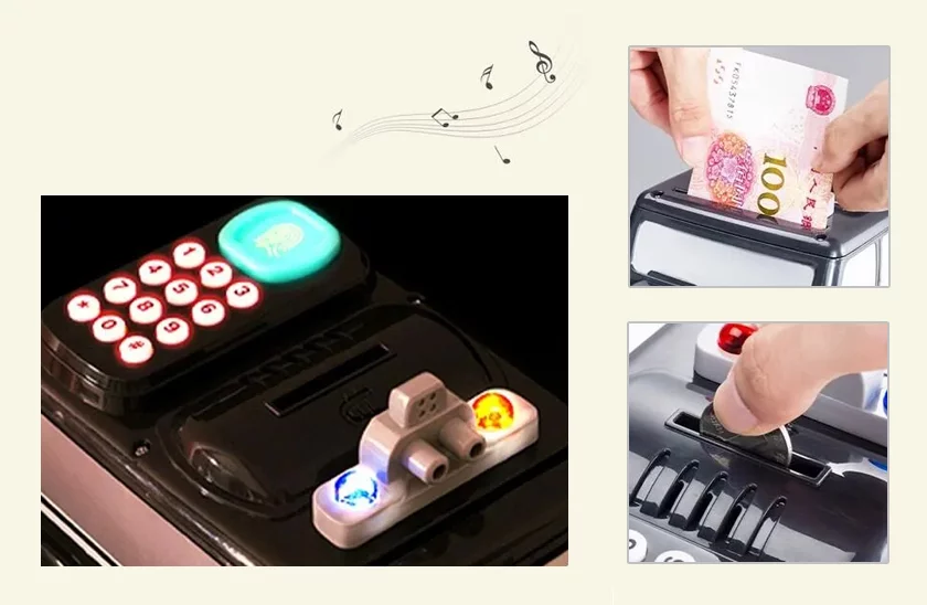 Dětská pokladnička je velmi atraktivní alternativou k tradičnímu prasátku. Specifický design a spousta zvukových a světelných efektů přitáhnou pozornost dětí a povzbudí je, aby si šetřily svoje kapesné.
