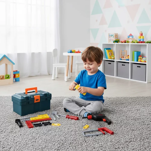 Podpořte dětskou kreativitu a manuální zručnost hravou formou. Bohatá sada nářadí umožní dětem napodobovat dospělé, učit se přesnosti, soustředění i logickému myšlení. Pohyblivé a funkční prvky dělají hru realistickou a zábavnou. Praktický kufřík usnadňuje přenášení i úklid.