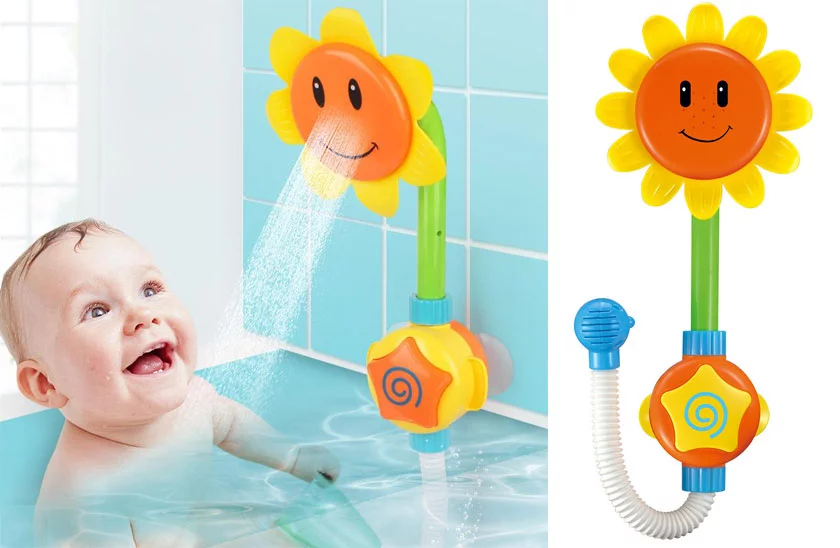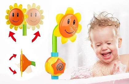 Pestrobarevná sprcha v designu slunečnice se bude líbit holčičkám i klukům. Děti si se slunečnicí užijí mnoho zábavy nejen při každodenním koupání ve vaně, ale také v letních měsících při dovádění v bazénu. Sprcha funguje na mechanickém principu, kdy po stisknutí tlačítka nasaje vodu a začne ji rozstřikovat.