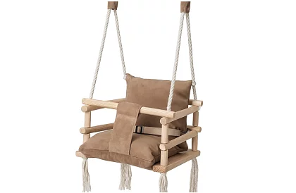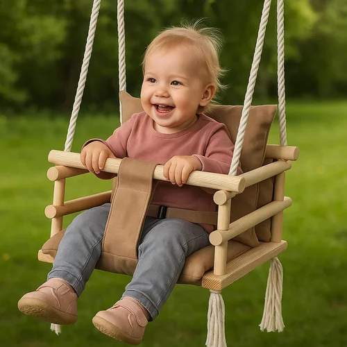 Stylová a bezpečná houpačka pro nejmenší děti, která spojuje pohodlí, design a vysokou bezpečnost. Měkké sametové provedení je příjemné na dotek a zároveň praktické na údržbu. Stabilní konstrukce z borovicového dřeva a pevná lana zajišťují bezpečné houpání doma i na kryté terase. Díky bezpečnostním pásům je vhodná už pro děti od 12 měsíců.