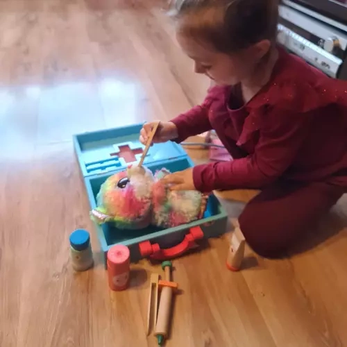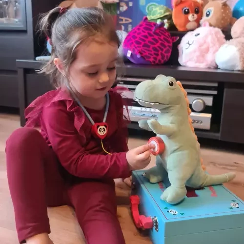 Hravá a bohatě vybavená lékařská sada, která dětem umožní nahlédnout do světa doktorů zábavnou a přirozenou formou. Díky realistickým doplňkům si děti mohou hrát na ošetřování panenek, plyšáků i rodičů, rozvíjet fantazii, jemnou motoriku a učit se základům péče o zdraví. Dřevěné provedení zajišťuje odolnost, bezpečnost a nadčasový vzhled.