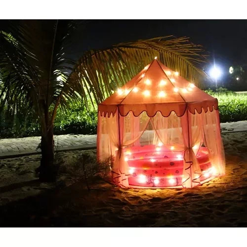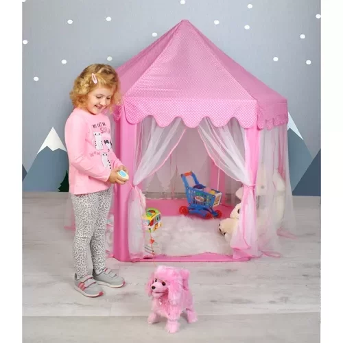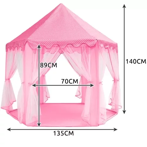 Prostorný dětský stan nabízí dostatek místa pro hraní více dětí současně nebo pro uložení oblíbených hraček, polštářů a doplňků. Díky atraktivnímu designu s šestihrannou základnou, šesti vchody a střechou ve tvaru jehlanu přináší nejen zábavu, ale i estetický vzhled do dětského pokoje či zahrady. Průsvitné závěsy dodávají kouzlo a umožňují hravé ovládání vstupů.