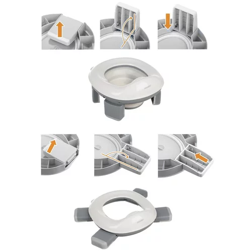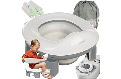 Praktický skládací nočník kombinuje nočník a záchodové prkénko pro pohodlné používání doma i na cestách. Kompaktní skládací design umožňuje snadnou přepravu a uskladnění, ve složeném stavu zabírá minimum místa. Odnímatelná flexibilní nádoba a možnost použití plastových sáčků zajišťují hygienické a pohodlné použití. Protiskluzové nožičky a pevná konstrukce poskytují stabilitu na jakémkoli povrchu a zvyšují bezpečnost dítěte. Součástí balení je 100 sáčků pro snadné a hygienické použití.