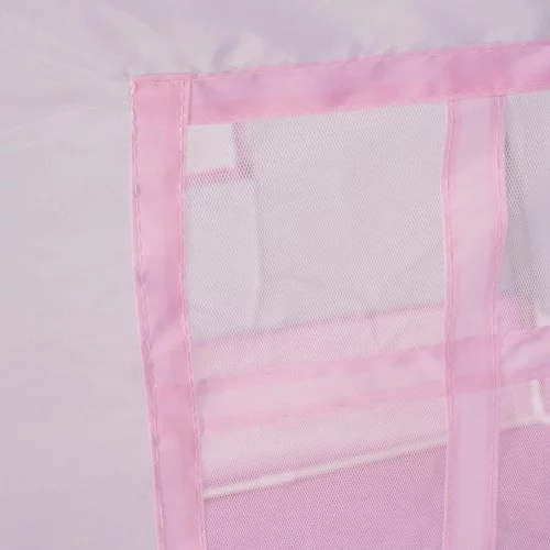 Dětský stan ve tvaru domečku nabízí hodiny zábavy a fantazijní hry pro každou holčičku. Jemná síťovaná okna a praktický vchod umožňují bezpečné schování oblíbených hraček a vytvářejí ideální místo pro kreativní a nápadité hraní. Stan je vhodný jak do interiéru, tak venku, například na zahradě, terase, pikniku nebo na pláži. Dodá prostoru jedinečnou atmosféru a může sloužit i jako úložný prostor pro hračky.