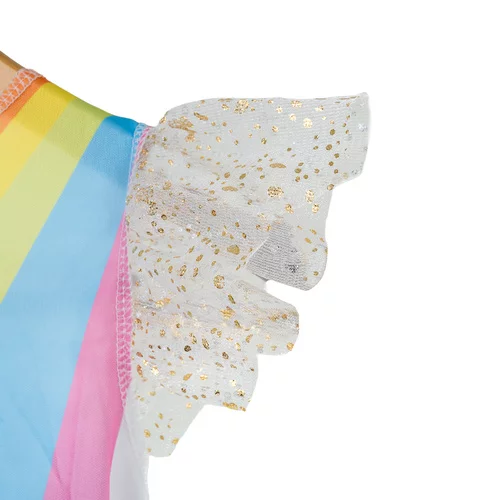Kouzelný kostým umožňuje stát se malou princeznou a přináší okamžitou radost. Kompletní sada obsahuje šaty, zlatá křídla a čelenku s rohem, takže je připravená k okamžité hře, na karnevalový ples, halloweenskou párty, narozeninovou oslavu či školní představení. Díky všestrannému použití se hodí pro každou příležitost a splní dětské sny o kouzelných postavách. Kostým je lehký, pohodlný a snadno se udržuje, což zajišťuje, že každá hra bude bez starostí.