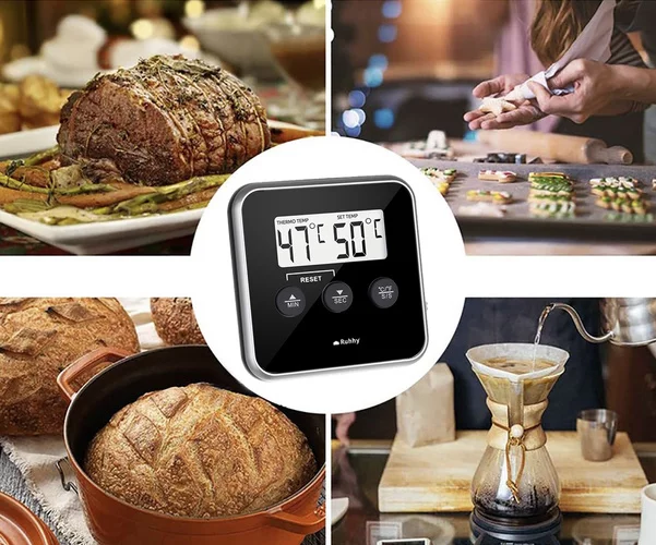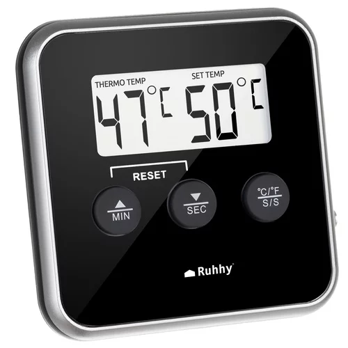 Tento teploměr je ideálním pomocníkem při přípravě masa, tekutin nebo olejů a umožní vám snadno kontrolovat teplotu s přesností až na jeden stupeň. Velký a přehledný LCD displej zajišťuje snadné čtení hodnot, zatímco magnet na zadní straně umožňuje připevnění teploměru na kovové povrchy, jako je lednička, trouba nebo gril. Funkce zvukového alarmu vás upozorní, jakmile teplota dosáhne nastavené hodnoty, a praktický časovač usnadní přesné sledování doby vaření.