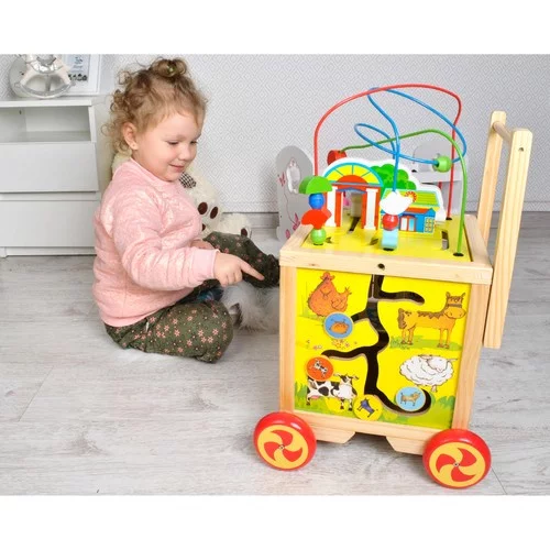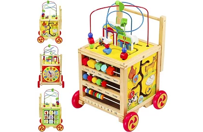 Odstrkovadlo s interaktivní kostkou přináší zábavu a podporu při učení prvních kroků. Dítě se učí správnému držení těla, rozvíjí koordinaci a zároveň objevuje kreativní aktivity na každé straně kostky. Díky odnímatelné motorové smyčce s korálky si může hrát i samostatně. Přírodní dřevo a ekologický design zaručují bezpečnost, odolnost a dlouhou životnost hračky.