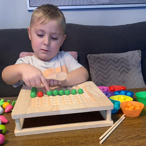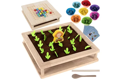 Oboustranná dřevěná hra 2v1 kombinuje zábavnou střelbu kuličkami a paměťovou hru farmu. Díky kombinaci manuálních a logických úkolů si dítě užije hodiny zábavy, rozvíjí koordinaci oko-ruka, soustředění a představivost a učí se logickému myšlení. Barevné prvky zaujmou a podpoří kreativitu při hře s rodiči nebo kamarády.