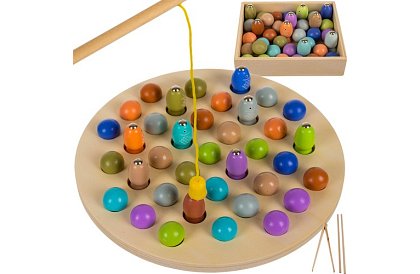 Rozvíjejte dětskou fantazii a manuální zručnost s touto zábavnou magnetickou hrou. Děti se učí soustředění, logickému myšlení a vizuální paměti, zatímco chytají barevné rybičky pomocí rybářského prutu s magnetem. Pevné dřevěné provedení zajišťuje dlouhou životnost a spoustu hodin zábavy.