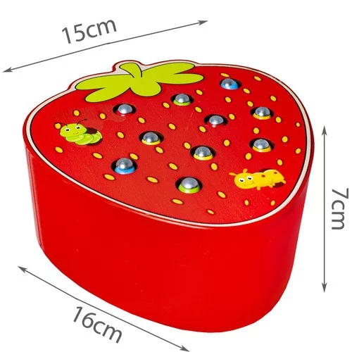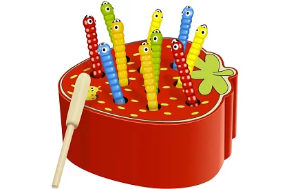 Rozvíjejte motoriku, koordinaci ruka-oko a pozornost batolete hravou formou. Hra spočívá v chycení červů ukrytých v dírách ovoce pomocí magnetické tyče a jejich následném zasunutí zpět. Posiluje soustředění, manuální zručnost a podporuje kreativitu. Díky živým barvám a realistickému designu jahody je hra pro děti vizuálně přitažlivá a podněcuje fantazii.