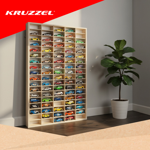 Dřevěná polička s 90 přihrádkami je ideálním řešením pro ukládání dětských autíček a menších hraček. Díky ní děti snadno najdou každý svůj model a zároveň se naučí udržovat pořádek. Police je navíc dekorativní doplněk do dětského pokoje a můžete ji přizpůsobit podle svých potřeb.