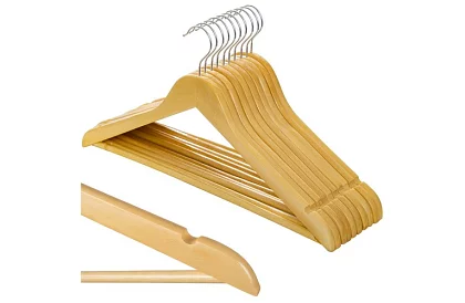 Elegantní dřevěná ramínka přinášejí do šatníku pořádek, přehlednost a dlouhodobou ochranu oblečení. Masivní dřevo s jemným bezbarvým lakem zajišťuje vysokou odolnost, přirozený vzhled a ochranu proti vlhkosti i poškrábání. Ergonomický tvar pomáhá udržet přirozený tvar oděvů, snižuje riziko pomačkání a dodává šatníku jednotný, čistý styl.