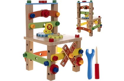 Dřevěná smyslová židle je interaktivní hračka, která spojuje zábavu se vzděláváním a rozvojem dítěte. Díky možnosti sestavení si dítě užije spoustu zábavy a zároveň se učí základům mechaniky a týmové spolupráce. Barevná ozubená kola produkují zvuky, stimulují smyslovou integraci a rozvíjejí kreativitu. Židle podporuje motorický rozvoj, představivost a intelektuální schopnosti dítěte a je bezpečná díky přírodnímu dřevu bez umělých materiálů.