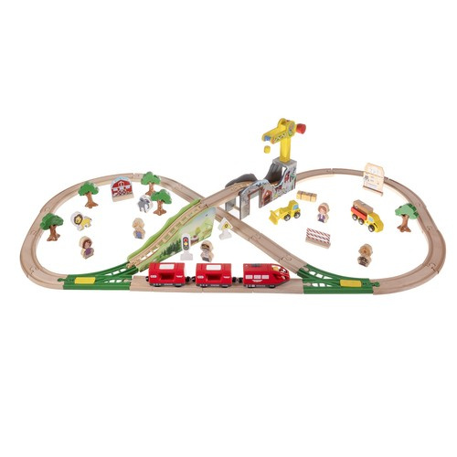 Velká sada dřevěné vláčkodráhy nabízí 57 pečlivě vyrobených a detailně dokončených prvků, se kterými si dítě může postavit vlastní trať i krajinu kolem ní. Magnetické spojení vlaků zajišťuje bezpečné a pevné propojení, zatímco doplňky jako stromy, budovy, figurky a jeřáb podněcují kreativitu a hodiny zábavy.