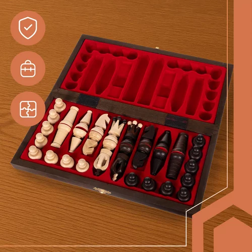 Stylová šachová sada z přírodního habrového dřeva spojuje tradiční hru s designovým doplňkem interiéru. Precizně vyřezávané figurky, polomatný lak a klasické barevné provedení dodávají sadě luxusní vzhled. Praktická šachovnice ve formě uzamykatelného kufříku s vnitřními přihrádkami zajistí bezpečné uložení všech figurek a pohodlné přenášení.
