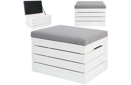 Praktický a designový taburet kombinuje pohodlné sezení s úložným prostorem. Sklopný čalouněný sedák umožňuje ukládat různé věci a šetřit místo v bytě. Díky univerzálnímu vzhledu se hodí do ložnice, obývacího pokoje, předsíně, dětského pokoje i na balkon. Prostorný interiér pojme vše potřebné, a taburet zároveň poslouží jako sedátko, podnožka nebo malý stolek.