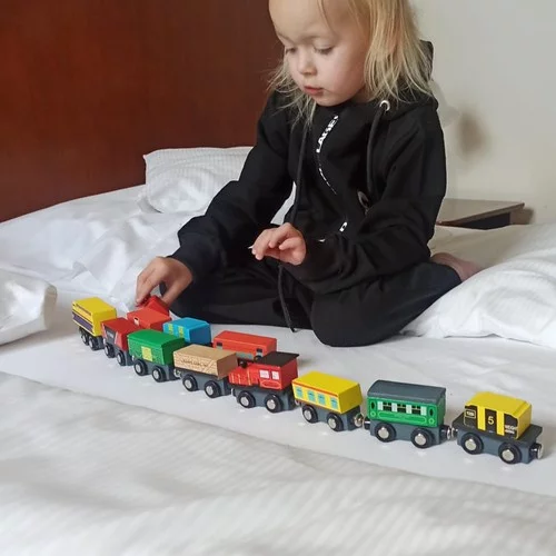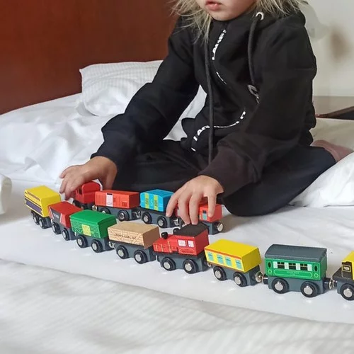 Zábavná a vzdělávací hračka, která děti zabaví na dlouhé hodiny a zároveň je učí cenným dovednostem. Hra s dřevěným vláčkem stimuluje zrak, podněcuje představivost a rozvíjí prostorové myšlení, ideální pro kreativní hraní doma i s vrstevníky.