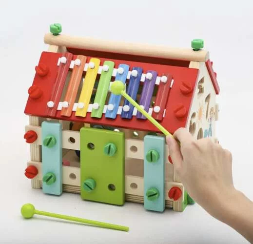 Dřevěný smyslový domeček nabízí multifunkční zábavu a vzdělávání v jednom. Každá strana obsahuje jinou interaktivní aktivitu. Děti se při hraní učí barvy, čísla a rozvíjejí jemnou motoriku, smyslovou integraci i představivost. Domeček podporuje samostatnost, protože si dítě může hru sestavit samo a hned si užít hodiny kreativní zábavy.