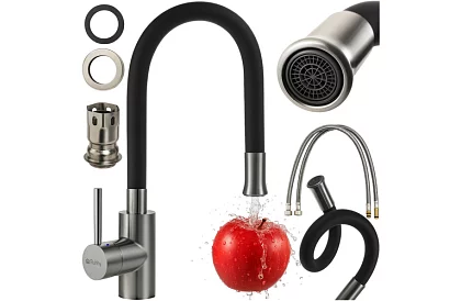 Moderní kuchyňská baterie navržená pro maximální pohodlí při každodenním používání. Flexibilní výtok otočný o 360° umožňuje snadné směrování proudu vody přesně tam, kam potřebujete, bez stříkání a zbytečné námahy. Vestavěný perlátor zjemňuje proud vody, pomáhá šetřit spotřebu a omezuje tvorbu vodního kamene. Odolná konstrukce, jednoduchá instalace a snadná údržba z ní dělají praktické řešení pro každou kuchyni.