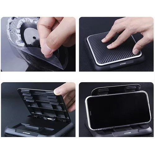 Umožňuje bezpečné a pohodlné používání telefonu při řízení i práci u stolu. Díky stabilní samolepicí základně, nastavitelným čelistem a měkkým silikonovým podložkám je zařízení bezpečně uchyceno, chrání telefon před poškrábáním a zajišťuje komfortní nastavení úhlu. Kompaktní design neblokuje zorné pole a hodí se na různé povrchy, od palubní desky po pracovní stůl.