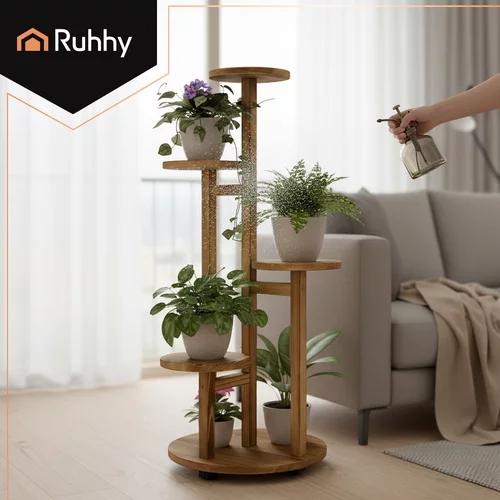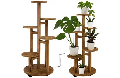 Stylový a praktický stojan na květiny z borovicového dřeva vám pomůže uspořádat rostliny přehledně a elegantně. Díky 6 úrovním pojme až 7 květináčů a umožní vytvořit atraktivní zelenou kompozici i na menším prostoru. Ideální do interiéru, na balkon i terasu. Praktická kolečka s aretací zajistí snadné přemístění bez námahy i poškrábání podlahy.