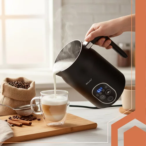 Elegantní pomocník pro milovníky kávy, který během pár sekund vytvoří hustou a krémovou mléčnou pěnu jako z kavárny. Díky 4 režimům ohřevu a multifunkčnímu použití zvládne horké i studené napěnění, ohřev mléka nebo přípravu horké čokolády. Moderní LED displej umožňuje přesnou kontrolu teploty i režimu, takže si každý nápoj připravíte přesně podle chuti.