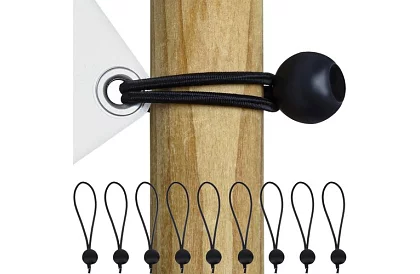 Ideální pro snadné a rychlé upevnění stanů, altánů, bazénových krytů či bannerů. Gumičky jsou opakovaně použitelné, univerzální a díky plastové kuličce je jejich montáž jednoduchá a pevná. Sada 10 kusů vám zajistí spolehlivé uchycení i na větší plochy.