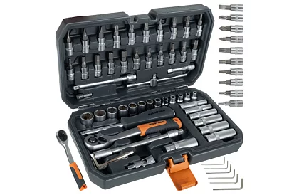 Praktická a spolehlivá sada ručního nářadí, která vám usnadní práci v dílně, garáži i při běžné domácí údržbě. Díky kvalitní chrom-vanadové oceli zvládá vysoké zatížení a poskytuje dlouhou životnost. Přesná 1/4" ráčna se 72 zuby umožňuje pohodlnou práci i ve stísněných prostorech a přehledný kufřík zajistí, že budete mít vše vždy po ruce.