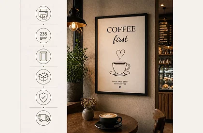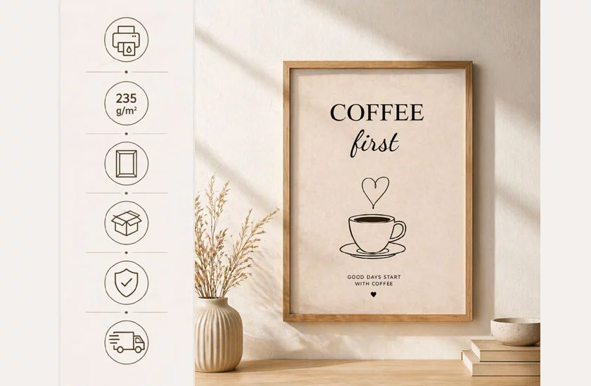 Oživte svůj interiér elegantním obrazem s motivem kávy, který vnese do prostoru příjemnou atmosféru a stylový vzhled. Decentní design a nadčasové provedení skvěle doplní kuchyni, jídelní kout, kancelář i domácí coffee corner. Kvalitní tisk na pevném fotografickém papíru zajišťuje ostré detaily, syté barvy a reprezentativní dojem. Obraz je zároveň skvělou volbou jako originální dárek pro každého milovníka kávy a vkusných dekorací.