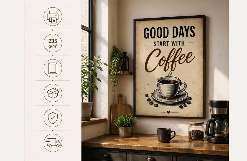 Stylový obraz s motivem kávy promění běžný interiér v útulné a inspirativní místo. Elegantní vzhled se hodí do kuchyně, jídelny, kanceláře i domácího coffee corneru. Kvalitní tisk na pevném fotografickém papíru nabízí ostré linie, krásné barvy a prémiový dojem. Skvělá volba také jako dárek pro každého, kdo miluje kávu.