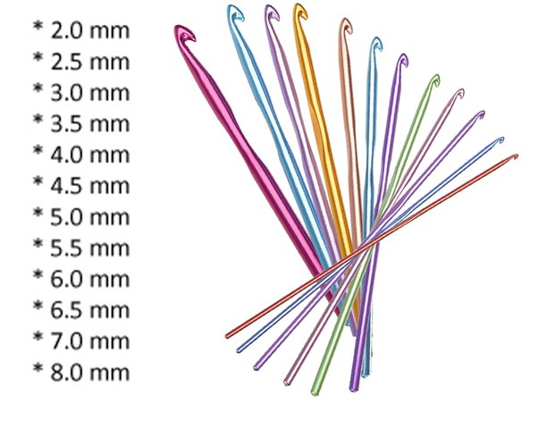 • Rozměry: velikosti háčků 2–8 mm (2, 2,5, 3, 3,5, 4, 4,5, 5, 5,5, 6, 6,5, 7, 8 mm)